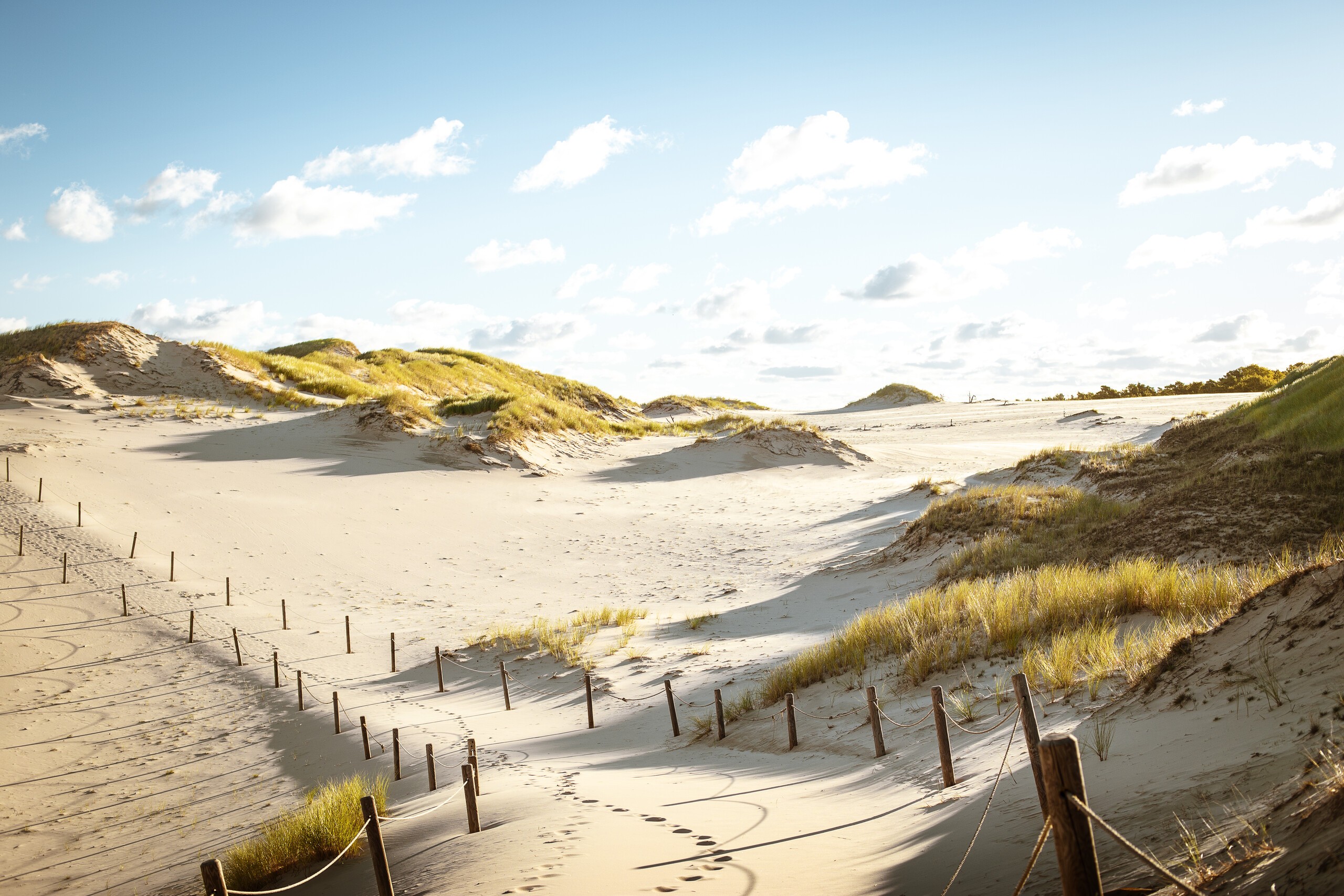 One of the most unique places in Poland – a sandy "desert" between the Baltic Sea and Lake Łebsko, where the wind shifts masses of sand every year, sculpting new forms. The most popular route leads from Rąbka to the Łącka Dune (approx. 8-9 km from the center), from where there is a panoramic view of the sea and lakes. The most pleasant and quiet time here is in the morning or late afternoon; in summer, it's worth bringing water, a hat, and sunglasses. You can reach Rąbka by car (parking at the barrier), by bike, or by electric cart – separately ticketed. Entry to the SPN during the season is paid (1-, 3-, and 7-day tickets).