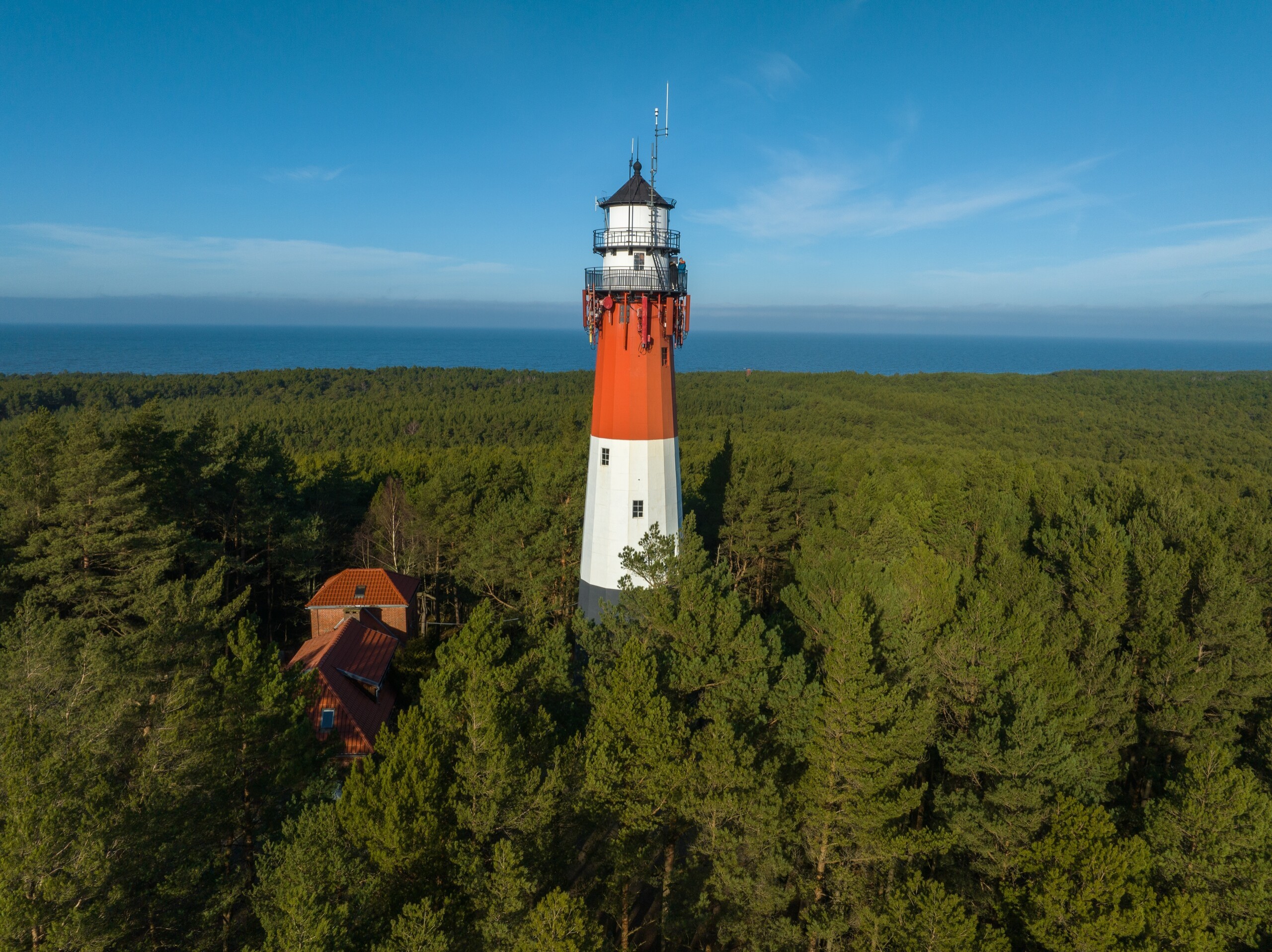 One of the most interesting Polish lighthouses - an all-metal structure in three color stripes, located among the coastal forests in the town of Osetnik (formerly Stilo), approx. 10 km from Łeba. Access on foot or by bike along a forest road; in the summer season the lighthouse is open daily, off-peak - shorter visiting windows. Current hours are published by, among others, the lighthouse operator (TPNMM).